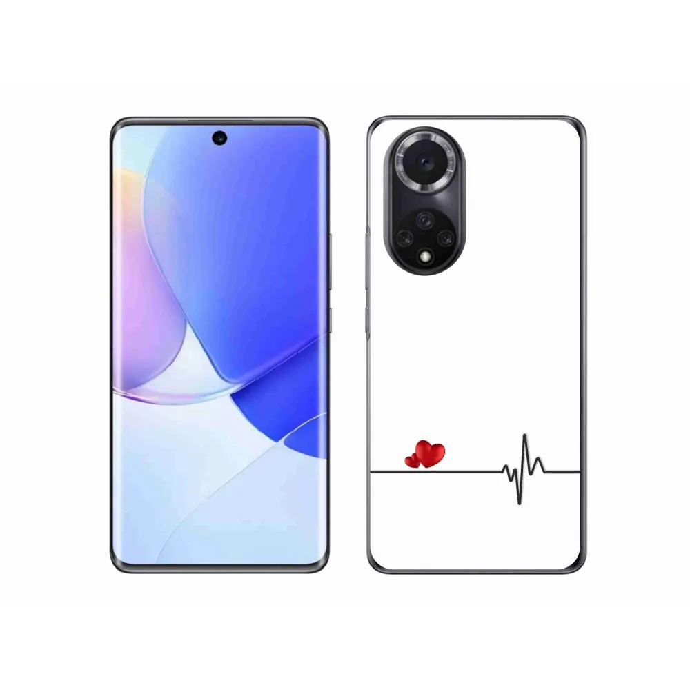 Rugalmas zselés tok mmCase a Huawei Nova 9 képével - szív és szívverés fehér háttérrel