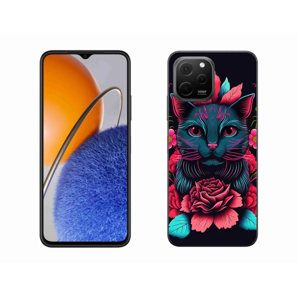 Rugalmas zselés tok mmCase a Huawei Nova Y61 képével - virágok és macska