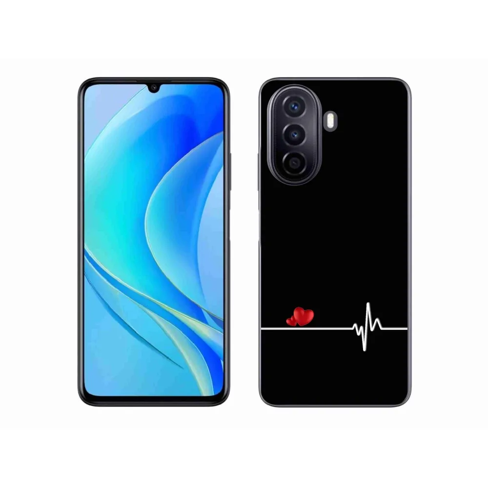 Rugalmas zselés tok mmCase a Huawei Nova Y70 képével - szív és szívverés fekete háttérrel