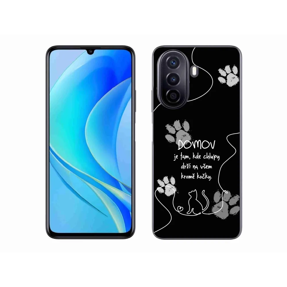 Rugalmas zselés tok mmCase a Huawei Nova Y70 képével - macska motívum fekete háttérrel