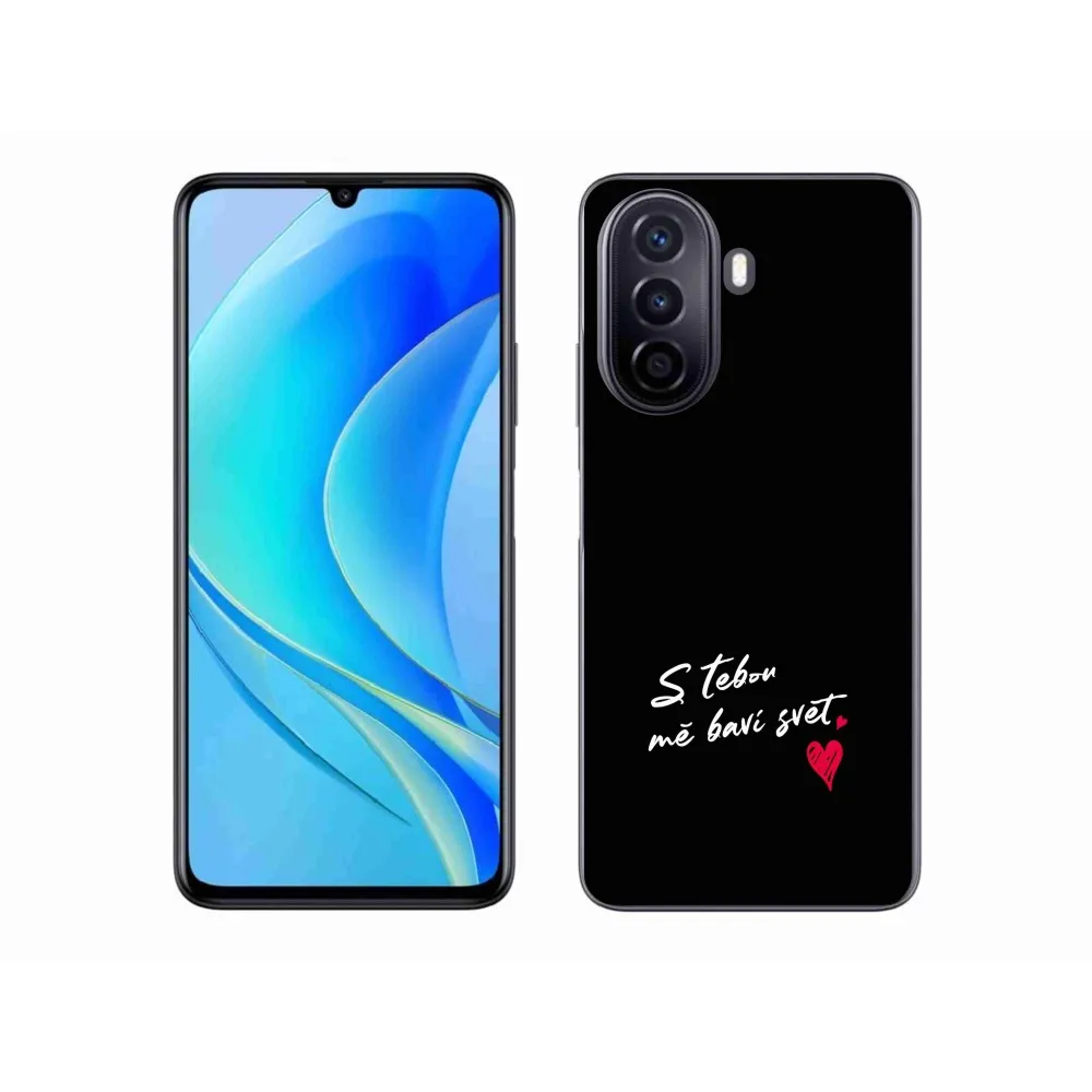 Rugalmas zselés tok mmCase a Huawei Nova Y70 képével - szerelmes szöveg 1 fekete háttérrel