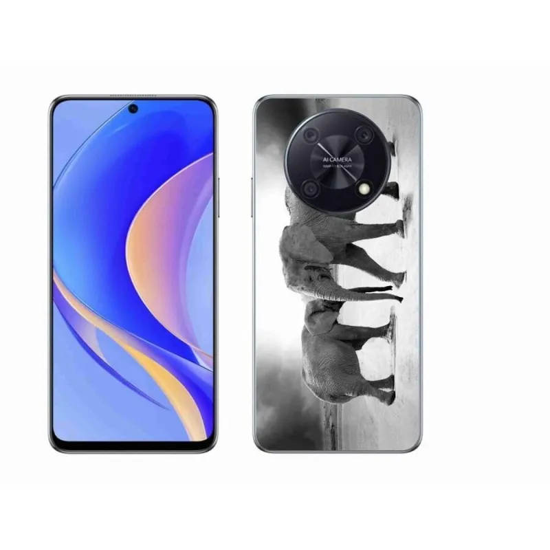 Gél borító mmCase a Huawei Nova Y90 készülékhez - fekete és fehér elefántok