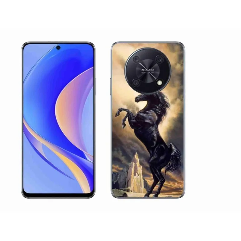Gél borító mmCase a Huawei Nova Y90 készülékhez - fekete rajzfilm ló