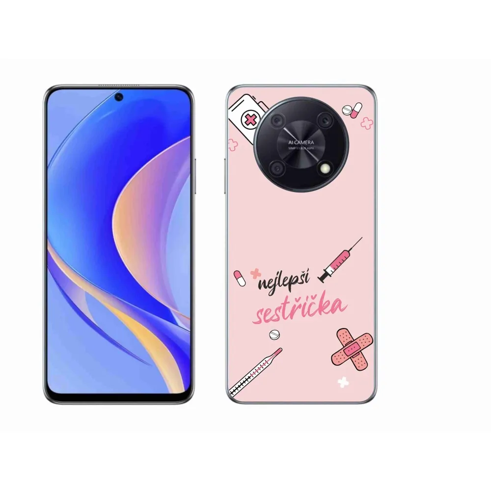 Rugalmas zselés tok mmCase a Huawei Nova Y90 képével - a legjobb kishúg rózsaszín háttérrel