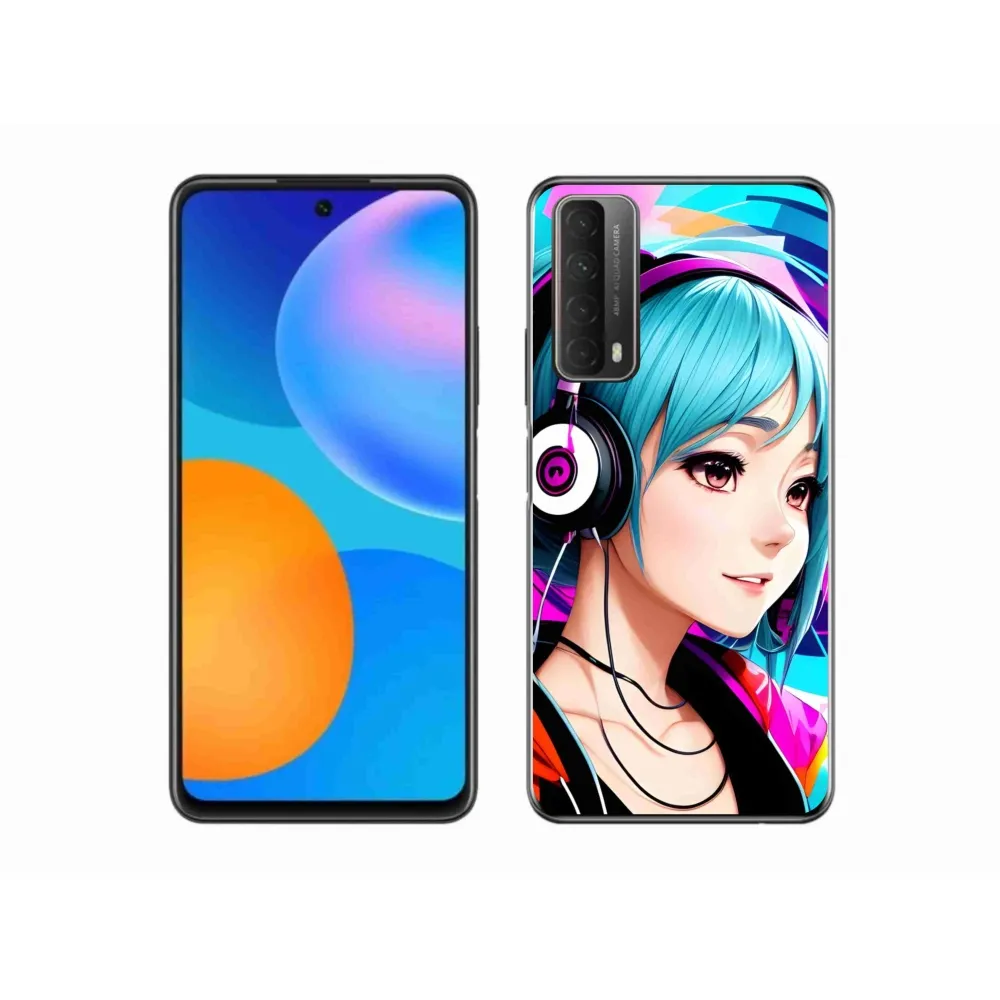 Rugalmas zselés tok mmCase a Huawei P Smart (2021) képével - lány fejhallgatóval