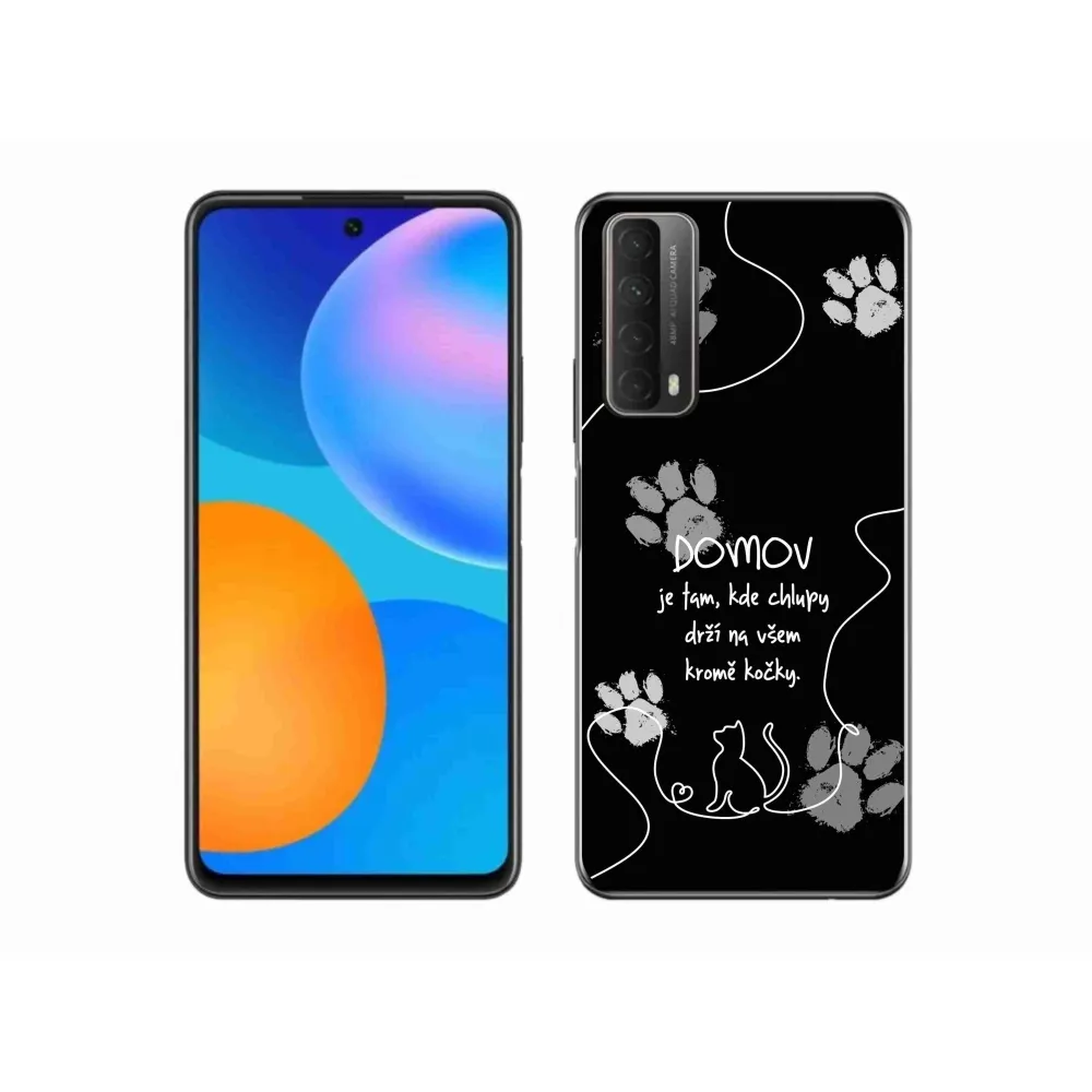 Rugalmas zselés tok mmCase a Huawei P Smart (2021) képével - macska motívum fekete háttérrel