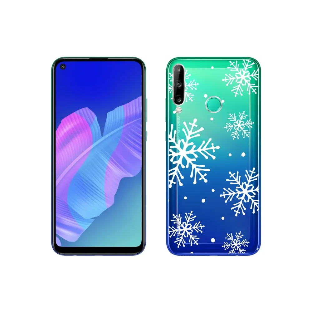 Rugalmas zselés tok mmCase képpel Huawei P40 Lite E - fehér hópelyhek átlátszó háttéren