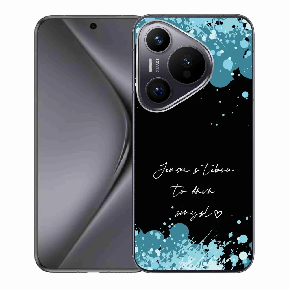 Rugalmas zselés tok mmCase a Huawei Pura 70 képével - szöveg szerelemben fekete háttérrel