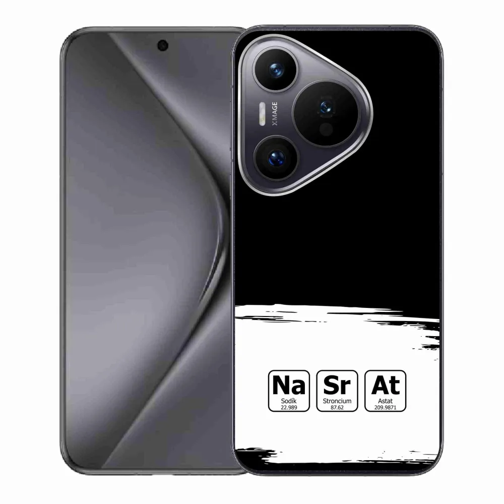 Rugalmas zselés tok mmCase a Huawei Pura 70 képével - kémiai elemek fehér és fekete háttérrel