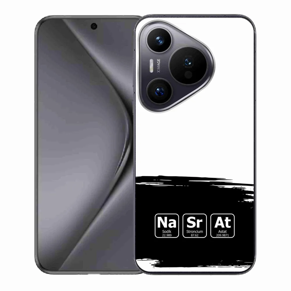 Rugalmas zselés tok mmCase a Huawei Pura 70 - kémiai elemek fekete-fehér háttérrel képével