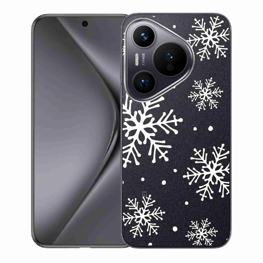 Rugalmas zselés tok mmCase a Huawei Pura 70 képével - fehér hópelyhek átlátszó háttéren