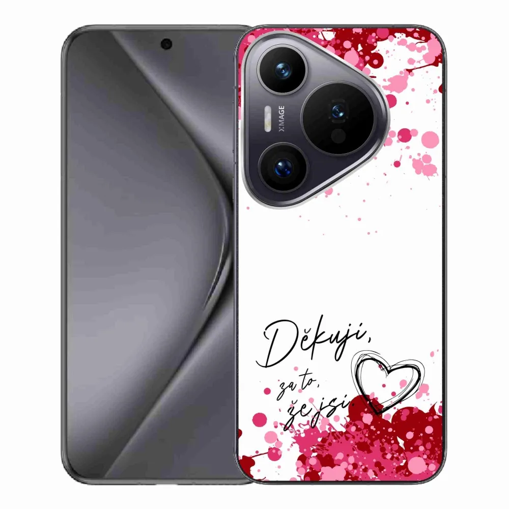 Rugalmas zselés tok mmCase a Huawei Pura 70 Pro képével - szerelmes szöveg 2 fehér háttérrel