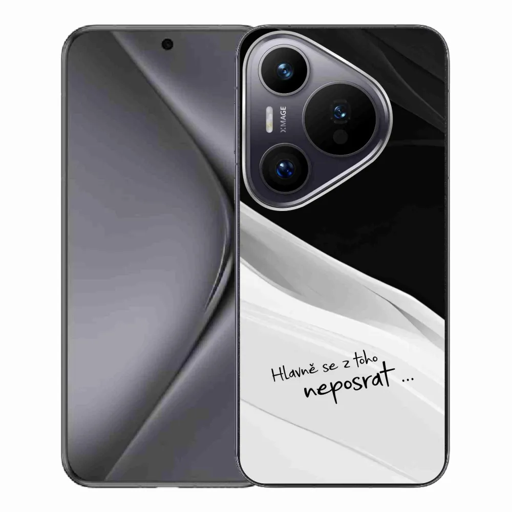 Rugalmas zselés tok mmCase a Huawei Pura 70 Pro képével - vicces szöveg 13 fehér és fekete háttérrel