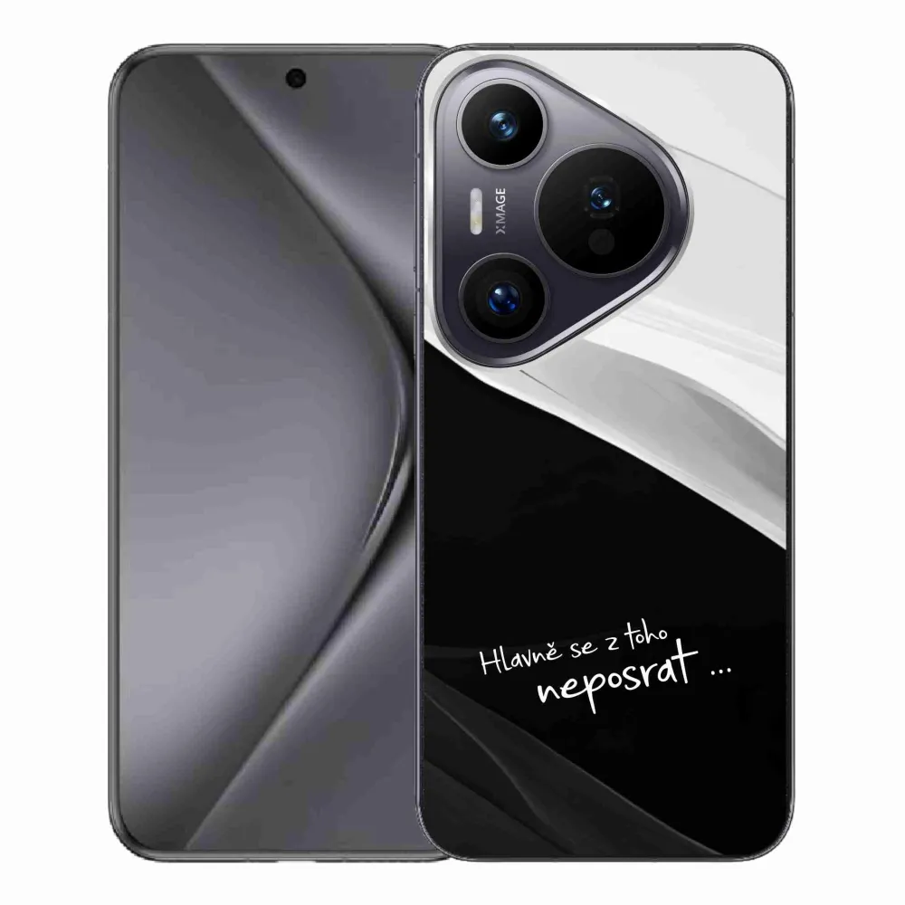 Rugalmas zselés tok mmCase a Huawei Pura 70 Pro képével - vicces szöveg 13 fekete és fehér háttérrel