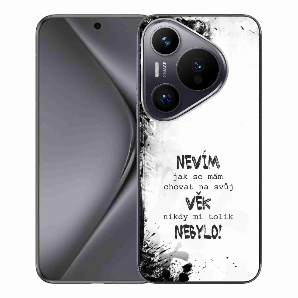 Rugalmas zselés tok mmCase képpel Huawei Pura 70 Pro - vicces szöveg 14 fehér háttérrel