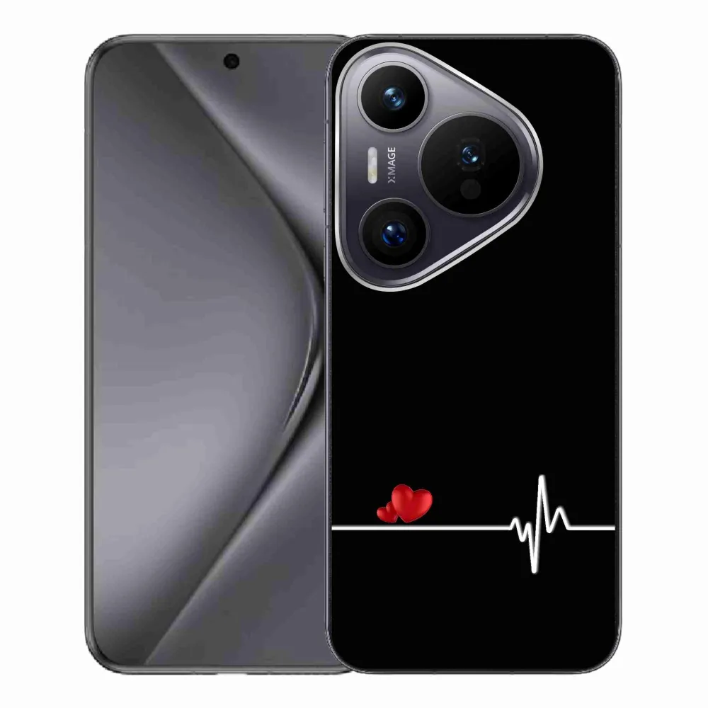 Rugalmas zselés tok mmCase a Huawei Pura 70 Pro képével - szív és szívverés fekete háttérrel