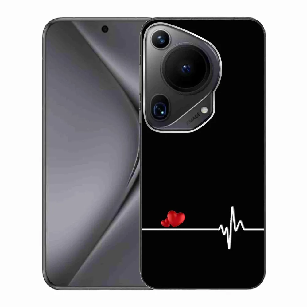 Rugalmas zselés tok mmCase a Huawei Pura 70 Ultra képével - szív és szívverés fekete háttérrel