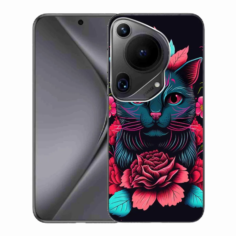 Rugalmas zselés tok mmCase a Huawei Pura 70 Ultra képével - virágok és macska