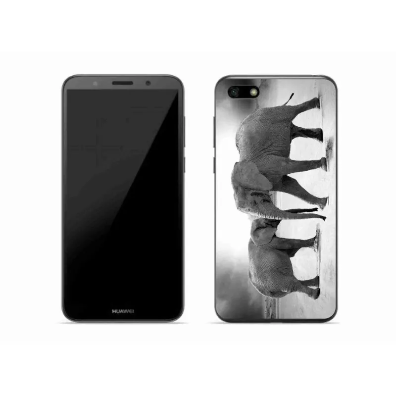 Gél borító mmCase a Huawei Y5 (2018) - fekete és fehér elefántokhoz