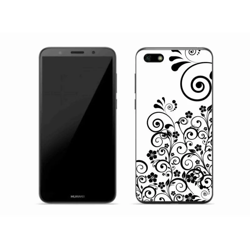 Gél borító mmCase a Huawei Y5 (2018) - fekete és fehér virágmintás tokhoz