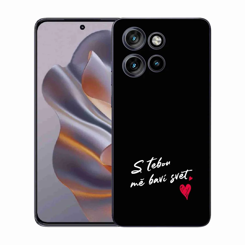 Rugalmas zselés tok mmCase a Motorola Edge 50 Neo képével - szerelmes szöveg 1 fekete háttérrel