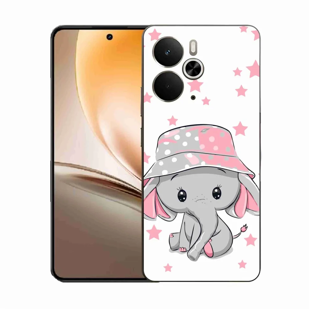 Rugalmas zselés tok mmCase képpel a Realme 14 5G/14T 5G számára - rózsaszín elefánt