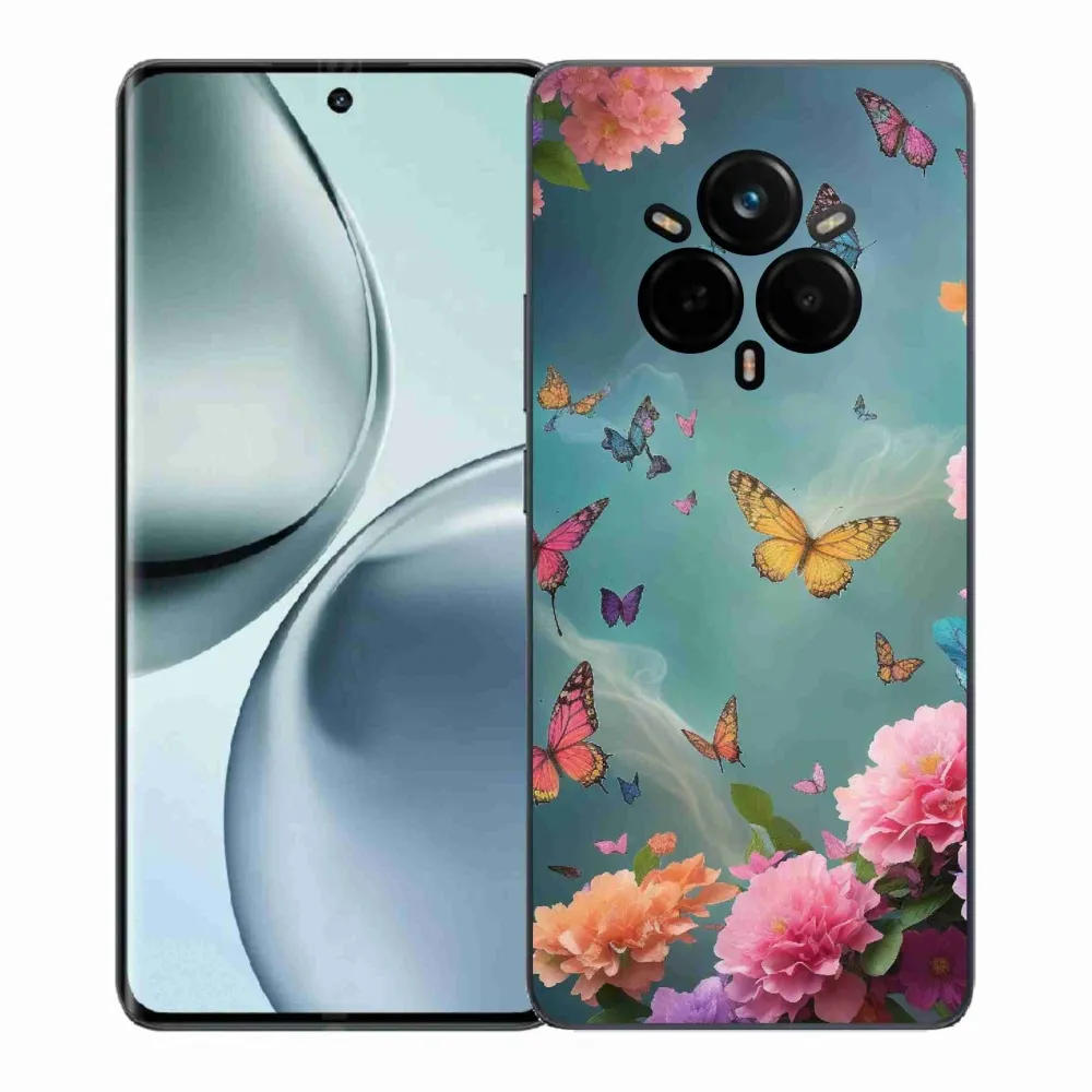 Rugalmas zselés tok mmCase képpel a Realme 14 Pro+ 5G számára - színes virágok és pillangók