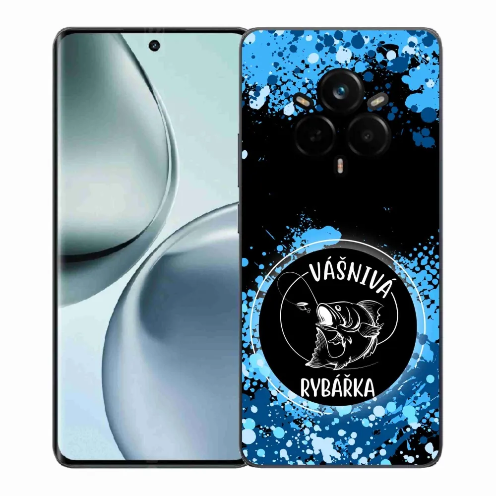 Rugalmas zselés tok mmCase képpel a Realme 14 Pro+ 5G számára - szenvedélyes halász fekete háttérrel