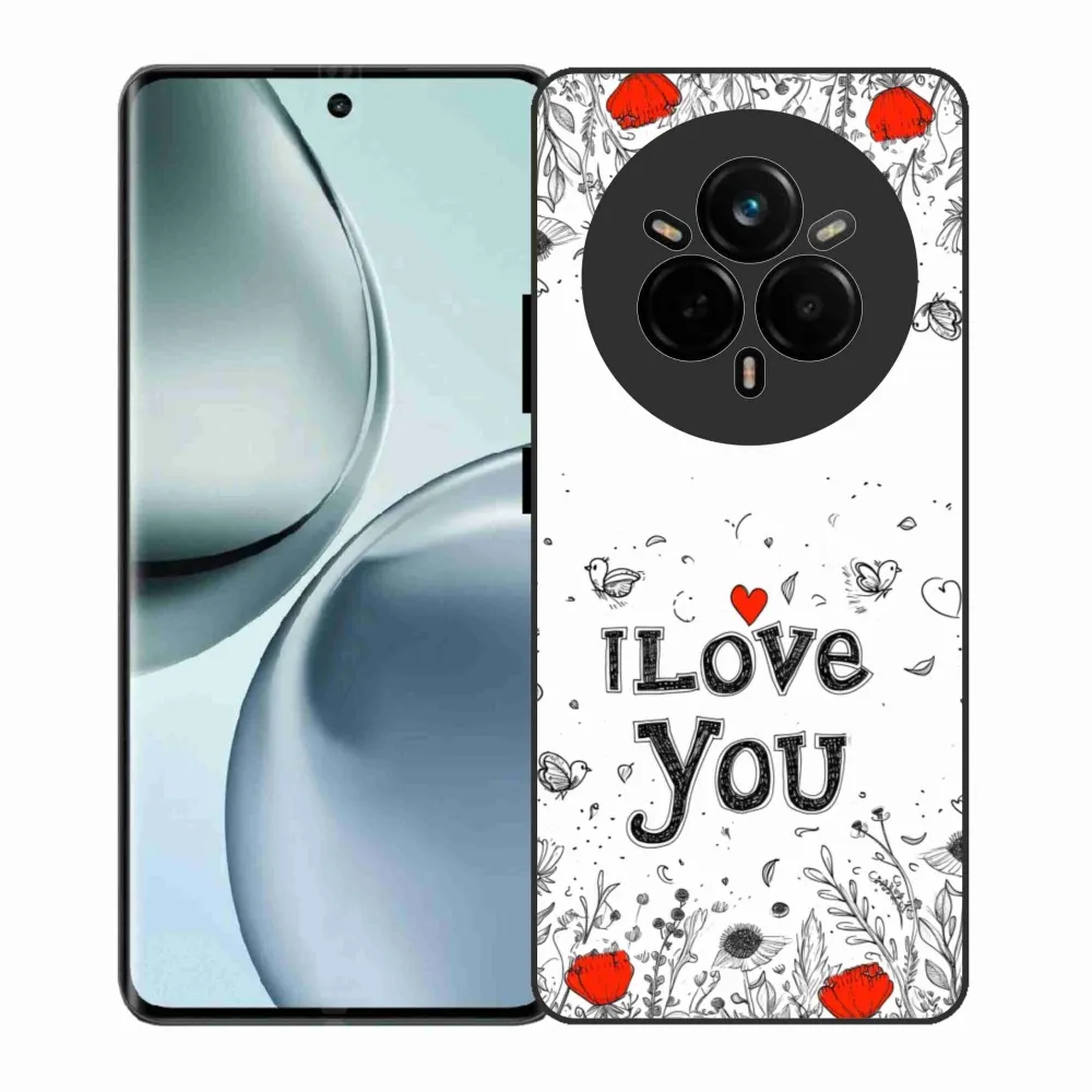 Rugalmas zselés tok mmCase a Realme 14 Pro 5G képével - I love you fehér háttérrel
