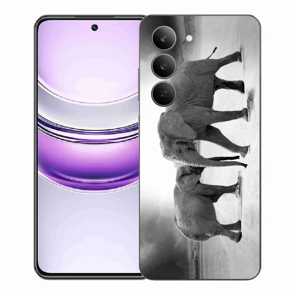 Gél borító mmCase a Realme 14x 5G készülékhez - fekete és fehér elefántok