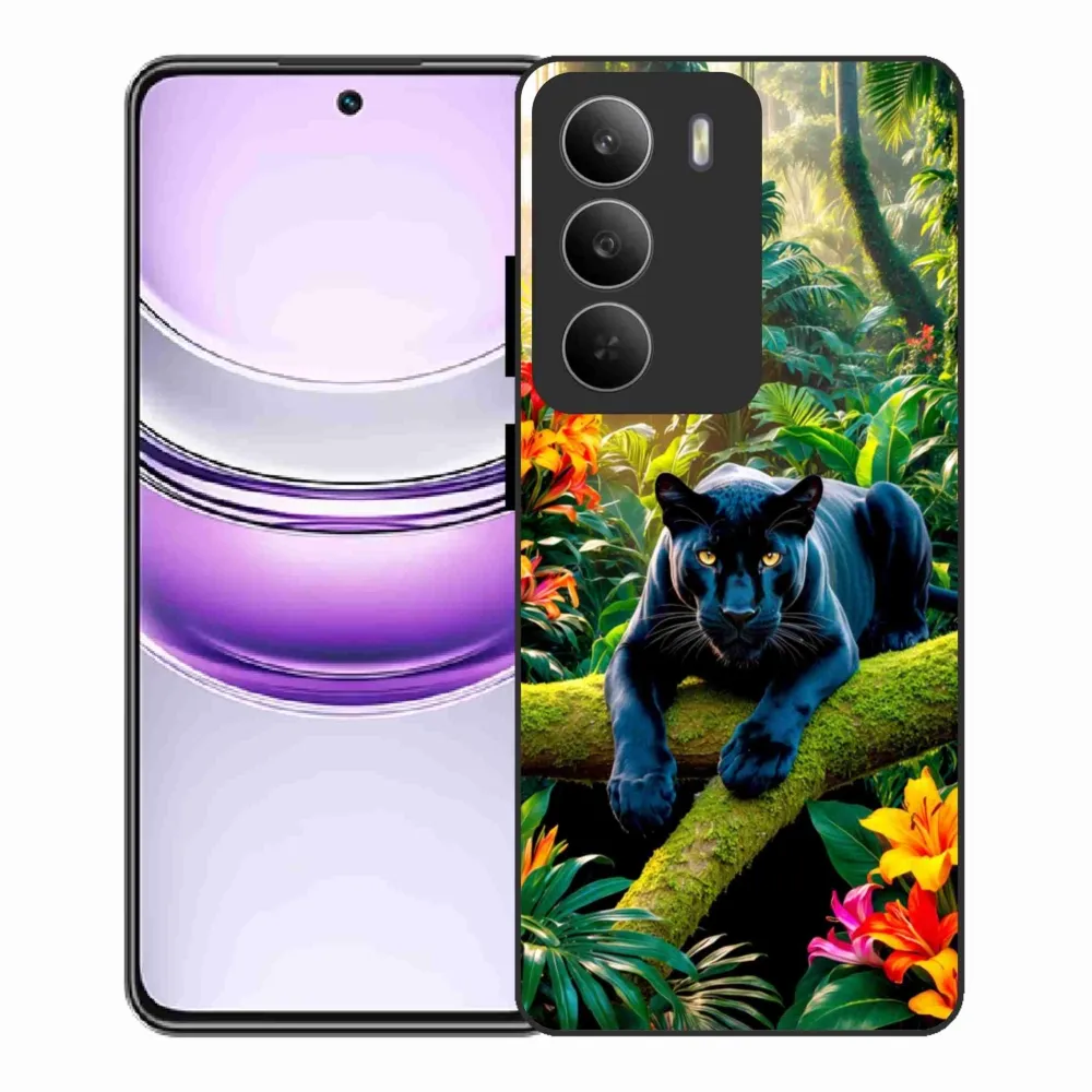 Rugalmas zselés tok mmCase képpel a Realme 14x 5G számára - fekete párduc a dzsungelben