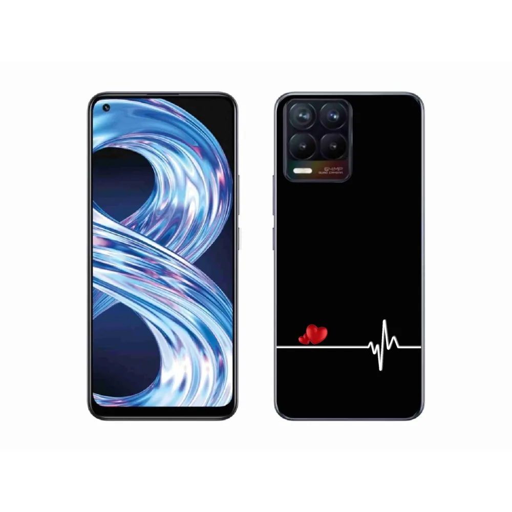Rugalmas zselés tok mmCase a Realme 8 4G képével - szív és szívverés fekete háttérrel