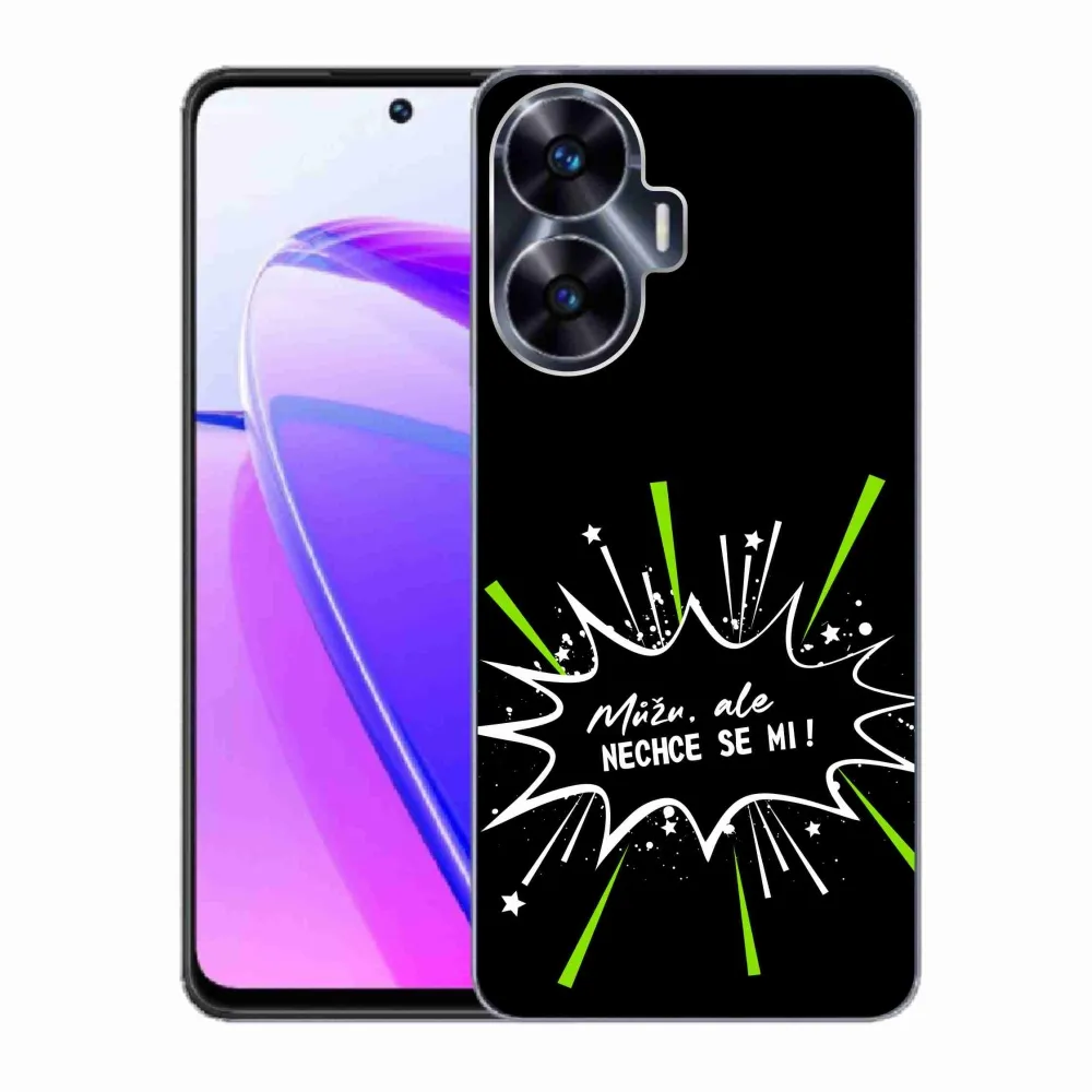 Rugalmas zselés tok mmCase képzeletbeli Realme C55 - vicces szöveg 11 fekete háttérrel