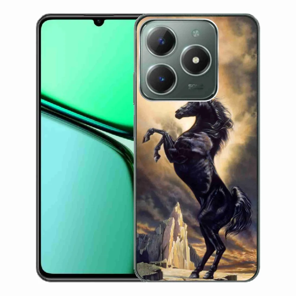 Gél borító mmCase a Realme C61 készülékhez - fekete rajzfilm ló