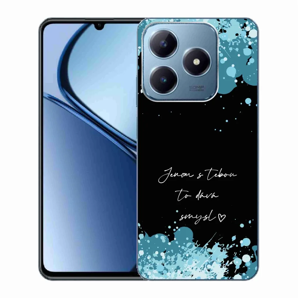 Rugalmas zselés borító mmCase a Realme C63 képével - szerelmes szöveg fekete háttérrel