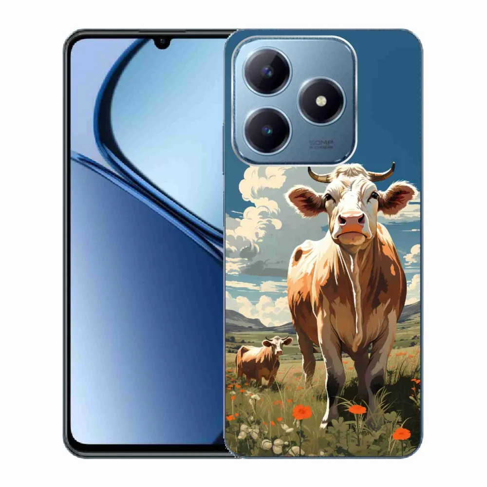 Rugalmas zselés borító mmCase képekkel a Realme C63 készülékhez - tehenek a réten