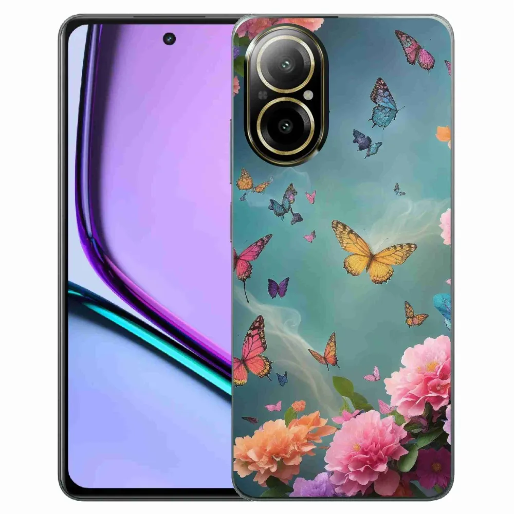 Rugalmas zselés tok mmCase képpel a Realme C67 készülékhez - színes virágok és pillangók