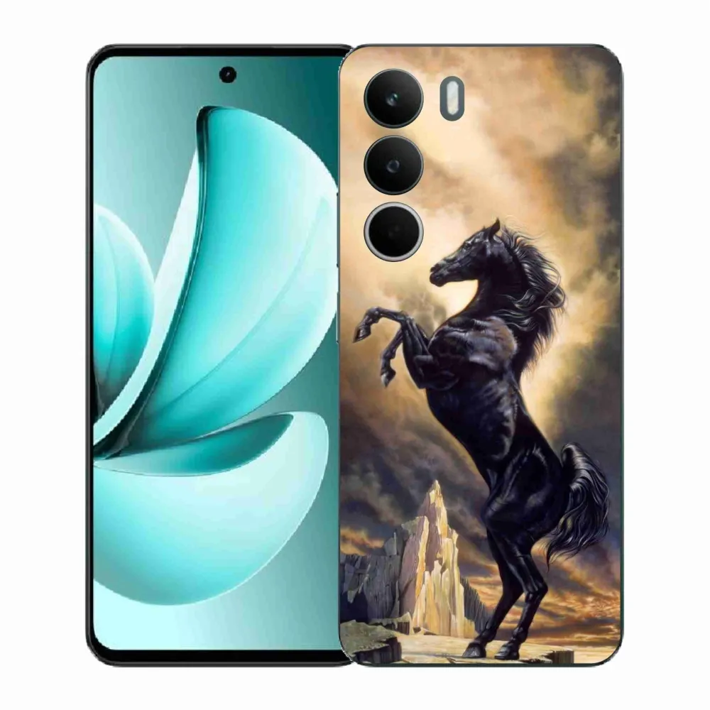 Rugalmas zselés tok mmCase képpel a Realme C71 számára - fekete rajzfilm ló