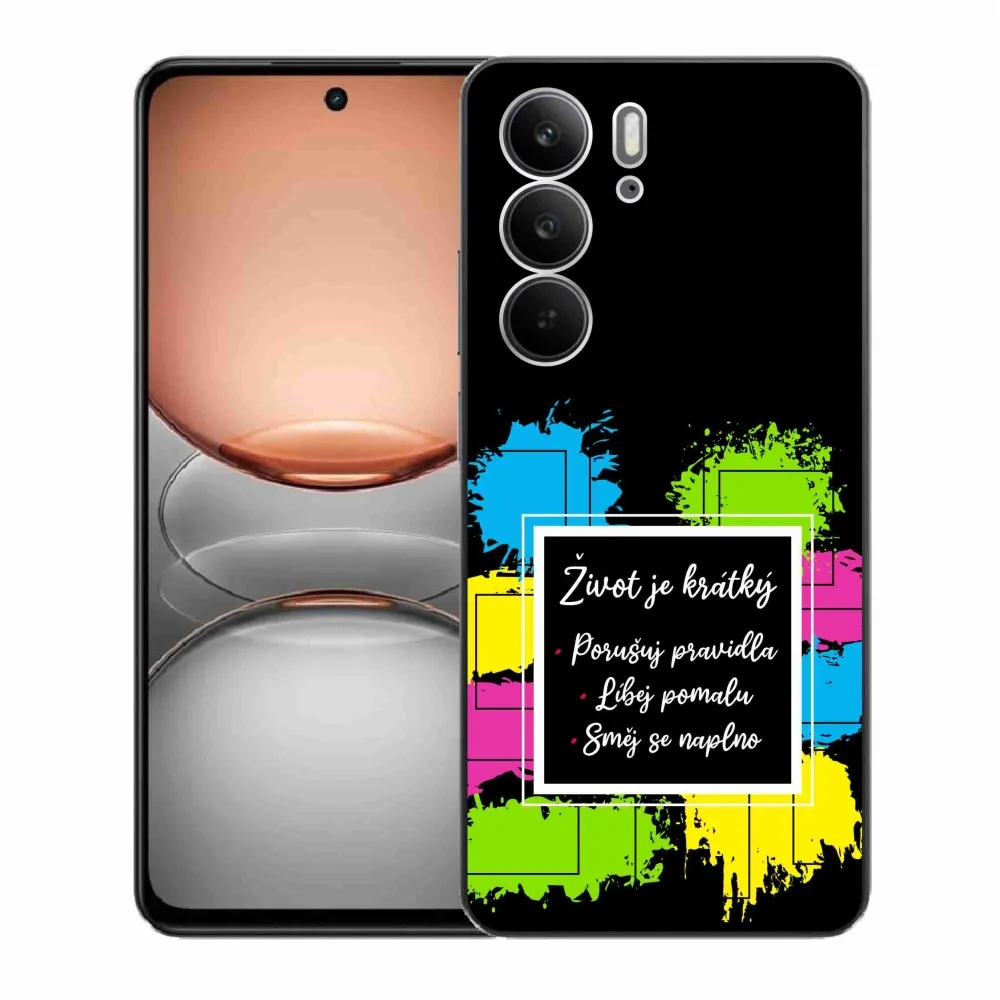 Rugalmas zselés tok mmCase a Realme C75 képével - idézet 5 fekete háttérrel