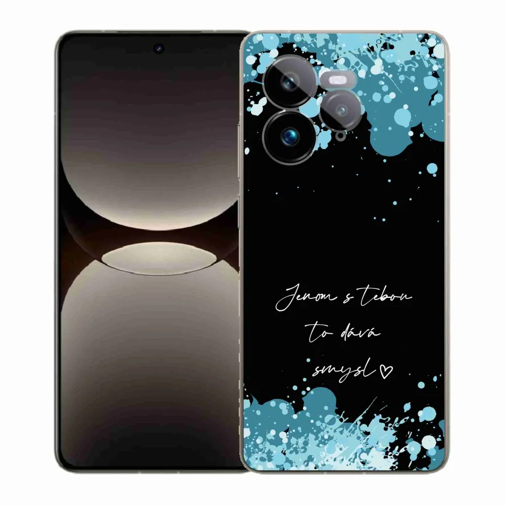 Rugalmas zselés tok mmCase a Realme GT 7 Pro 5G képével - szerelmes szöveg fekete háttérrel