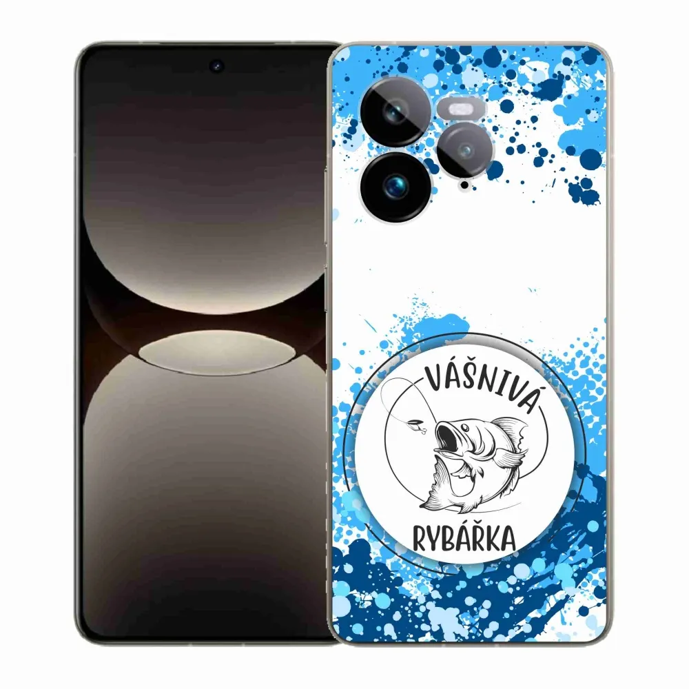 Rugalmas zselés tok mmCase a Realme GT 7 Pro 5G képével - szenvedélyes halásznő fehér háttérrel