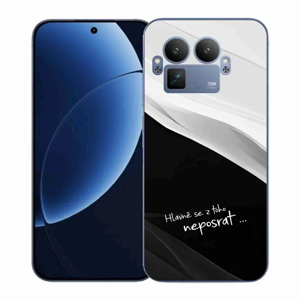 Rugalmas zselés tok mmCase képzeletbeli Realme GT 8 Pro - vicces szöveg 13 fekete-fehér háttérrel