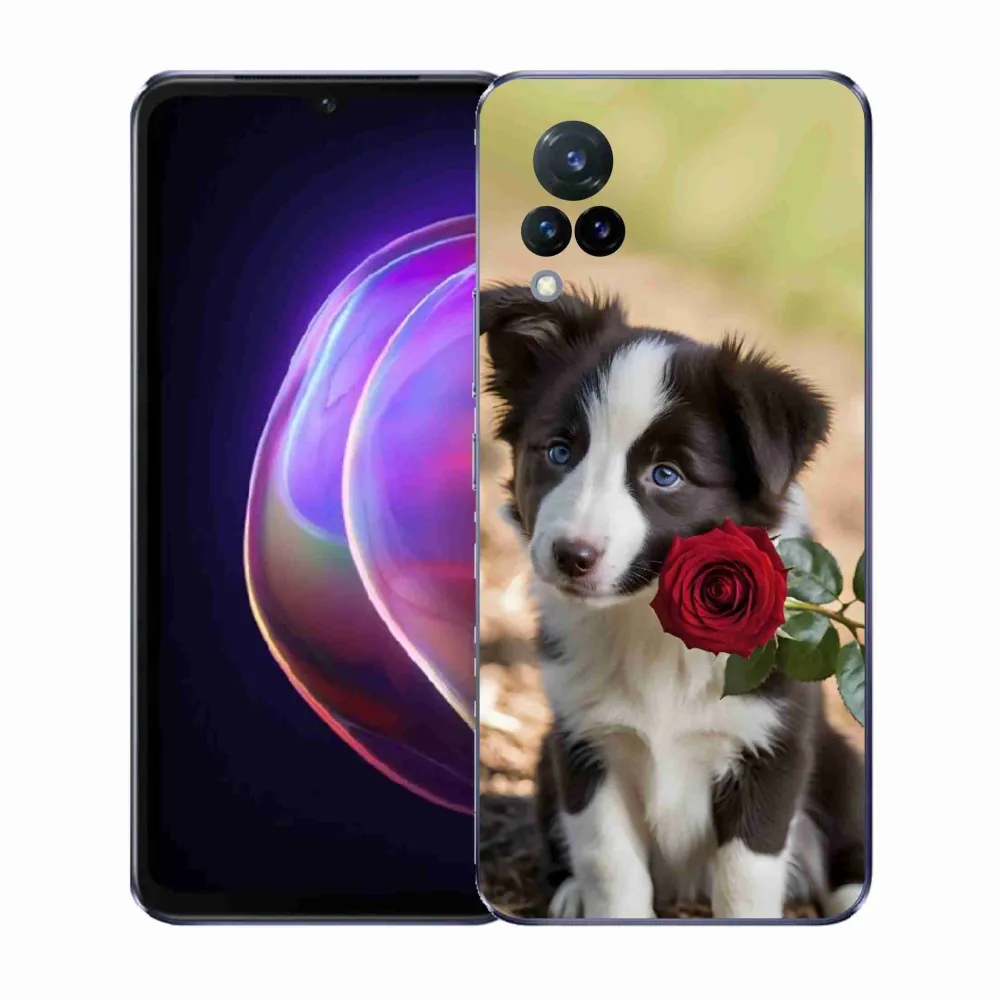 Rugalmas zselés tok mmCase a Vivo V21 4G/5G képével - aranyos border collie rózsával