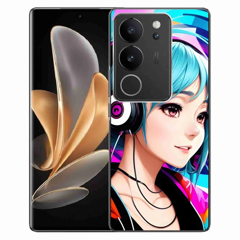 Gél borító mmCase a Vivo V29 5G-n - lány fejhallgatóval