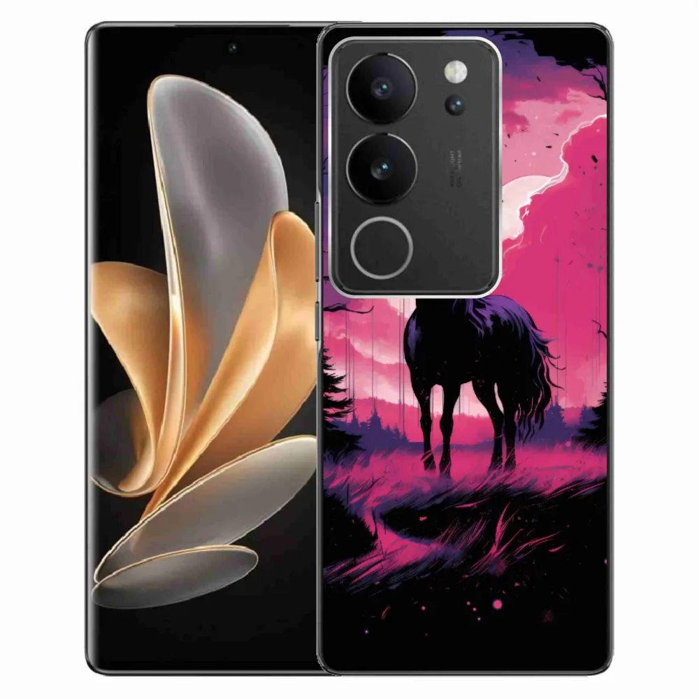 Rugalmas zselés tok mmCase a Vivo V29 5G képével - fekete rajzfilm ló 1