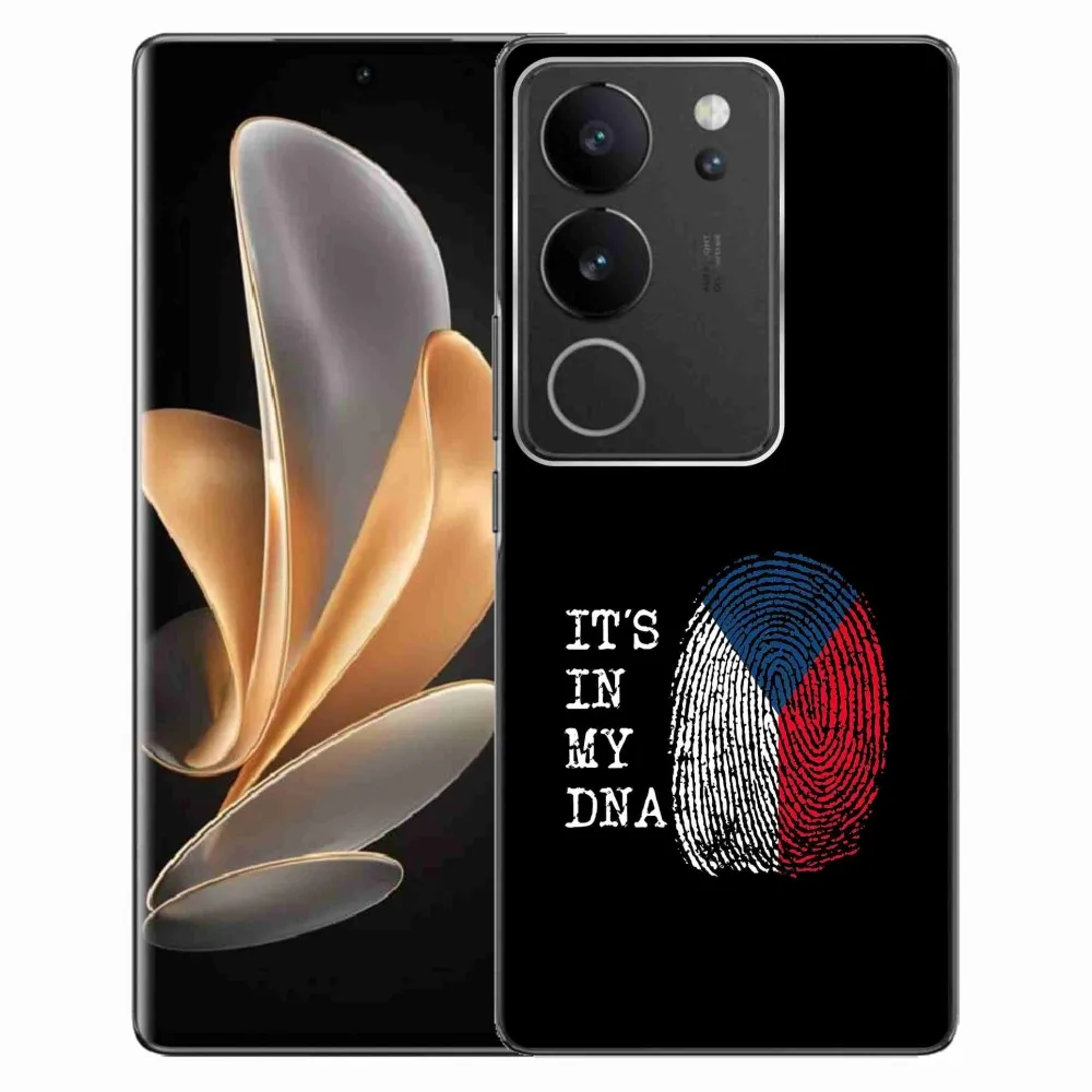 Rugalmas zselés tok mmCase a Vivo V29 5G képével - zászló ujjlenyomat fekete háttérrel