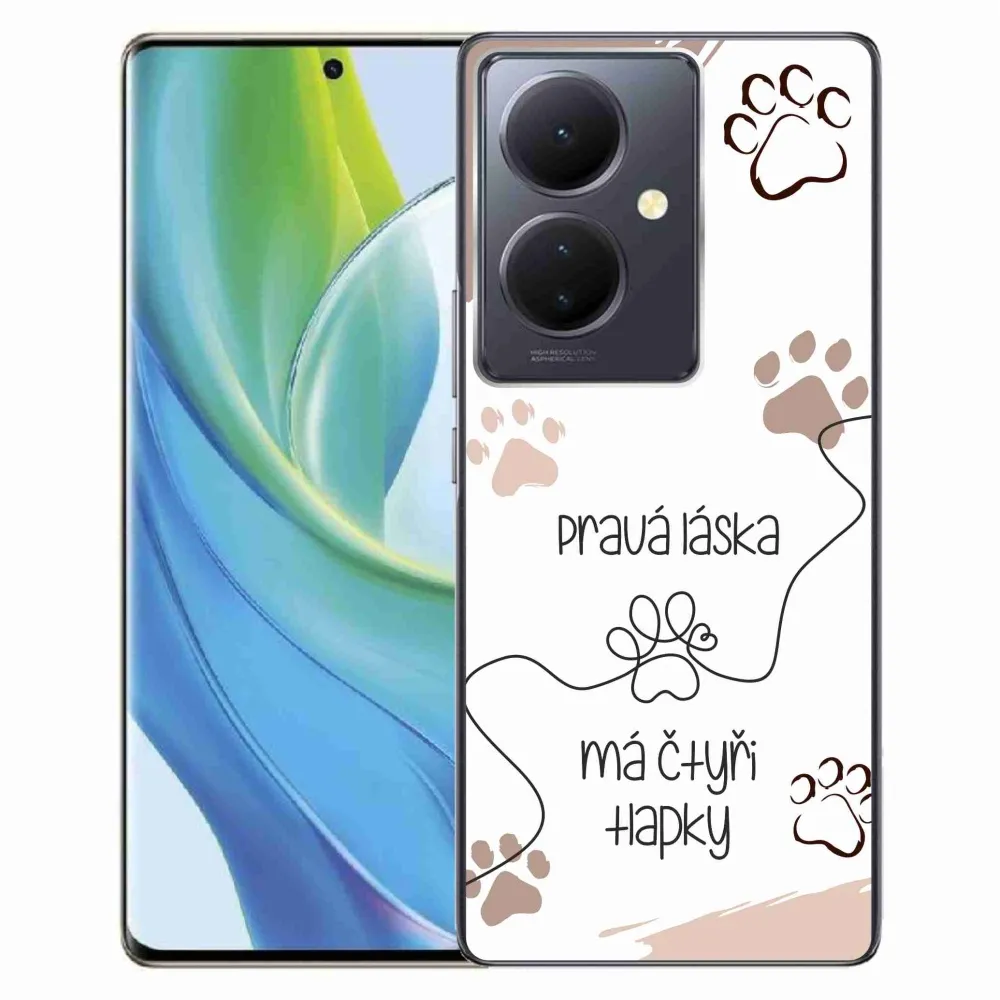 Rugalmas zselés tok mmCase a Vivo V29 Lite 5G képével - kutyamotívum 1 fehér háttérrel