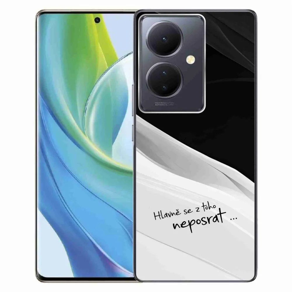 Rugalmas gél tok mmCase kép a Vivo V29 Lite 5G - vicces szöveg 13 fehér és fekete háttérrel