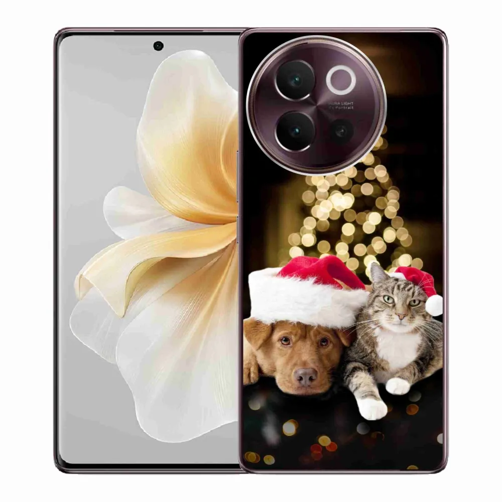 Rugalmas zselés tok mmCase a Vivo V40 Lite 5G képével - karácsonyi kutya és macska