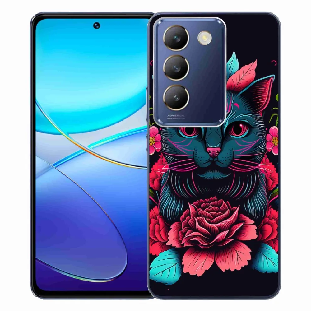 Rugalmas gél borító mmCase a Vivo V40 SE 4G/5G képével - virágok és macska